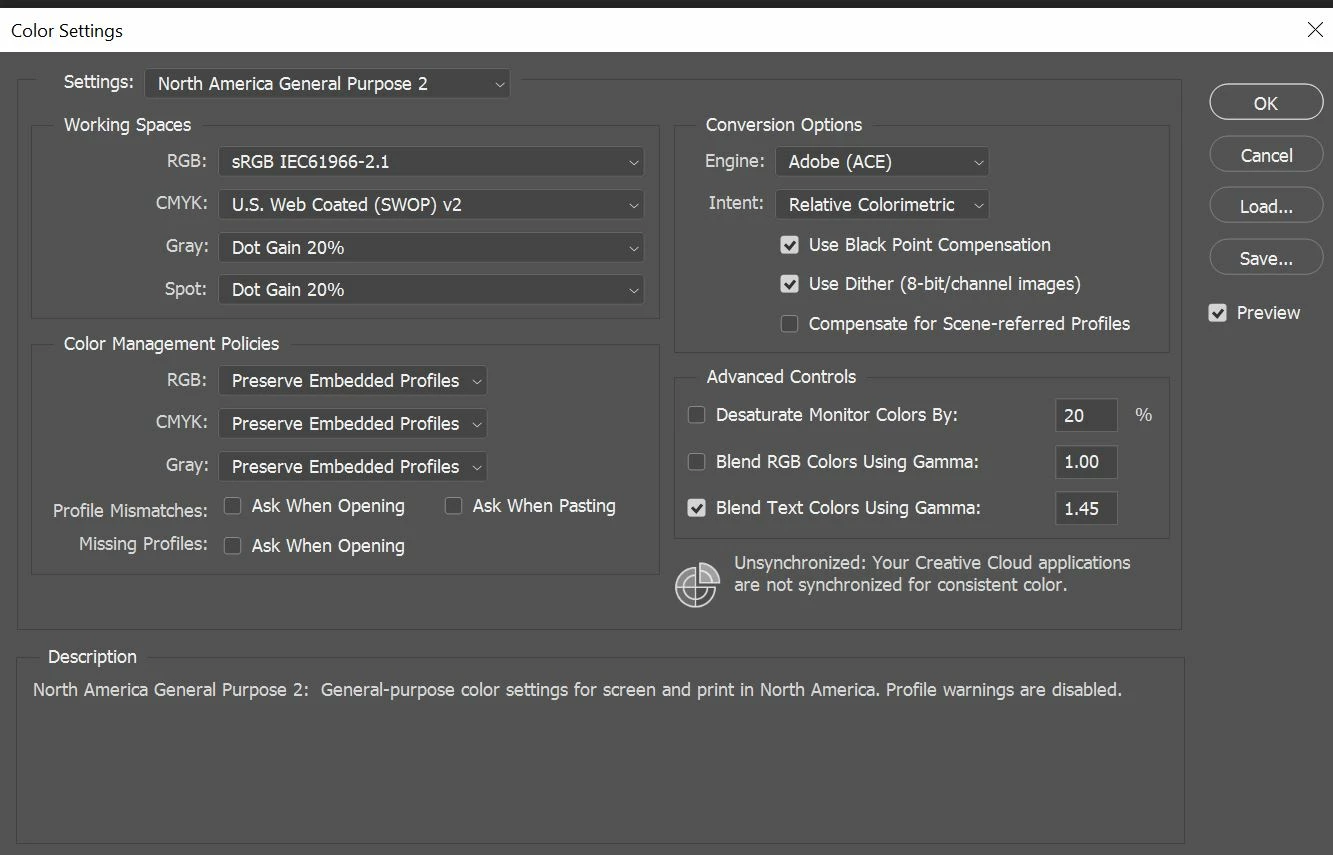 I'm not sure why, but all my colours in photoshop are now displaying faded. I have reinstalled photoshop to see if it was a setting I had accidently changed. The colour settings are as I would expect (sRGB).