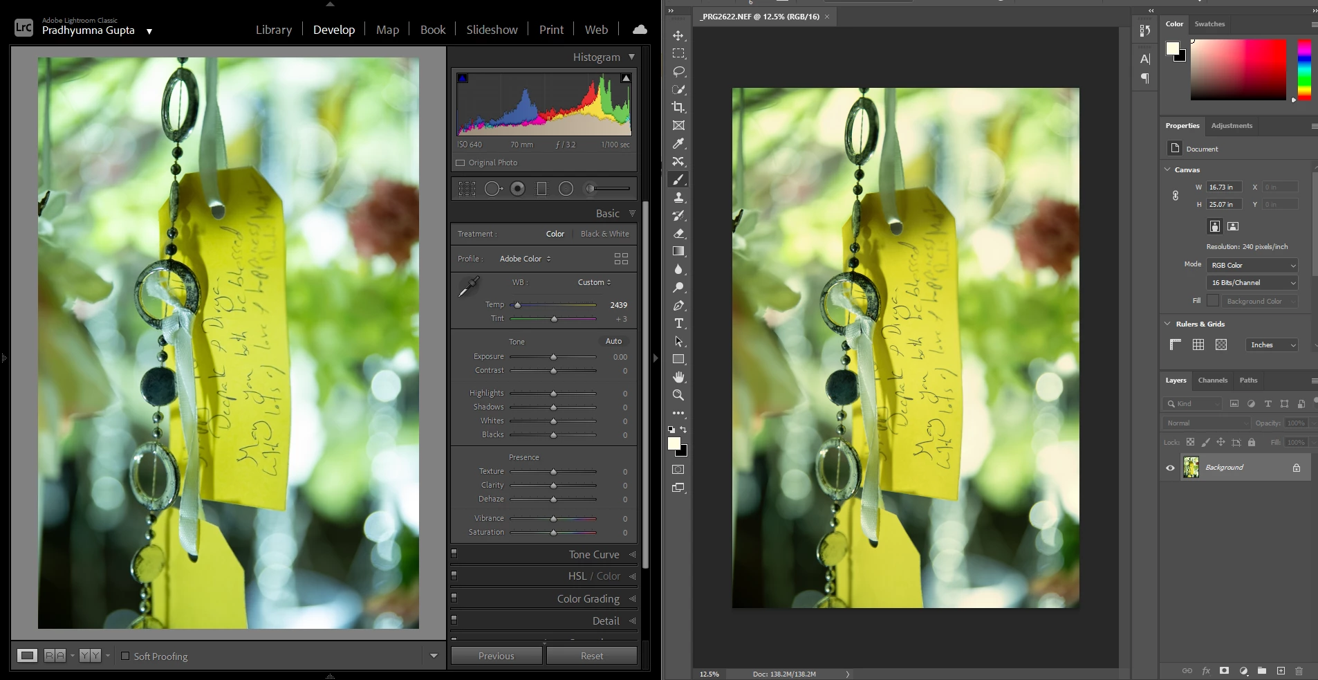 3. Exposure/Contrat and other changes are carried over to PS but the image still has a strong warm White Balance in PS.