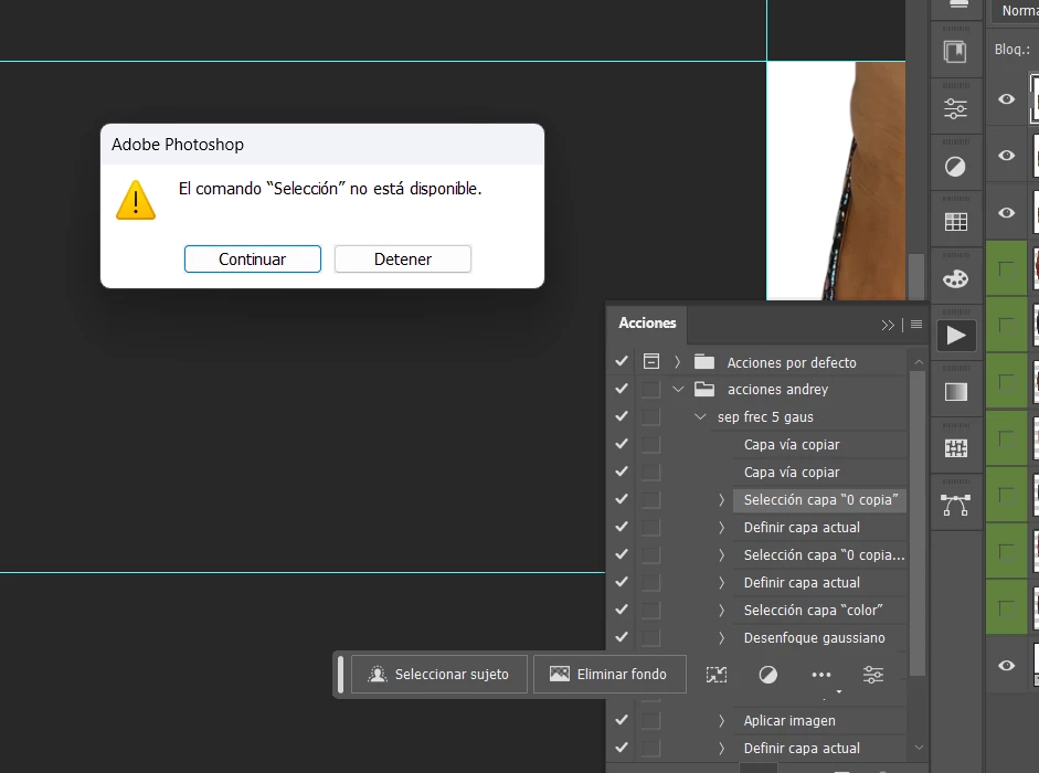 Me he creado algunas acciones en Photosohop y cuando voy a ejecutarlas me dice que el comando selección no está disponible.