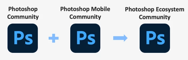 - Photoshop ecosystem: The Photoshop & Photoshop Mobile communities will consolidate into a new community called, “Photoshop ecosystem”.