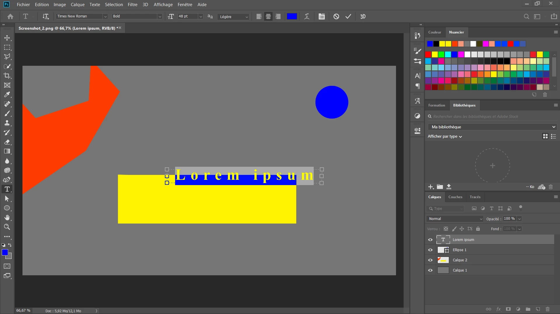 Je débute sur ps, et je souhaiterai apprendre a refaire cette effet ( a savoir l'inversion des couleurs du texte et du rectangle) que je n'obtiens que lorsque je sélectionne celui ci. Il faudrait que cette effet (si technique il y a pour le faire) soit visible sur l'image une fois travail fini et exporté !!!