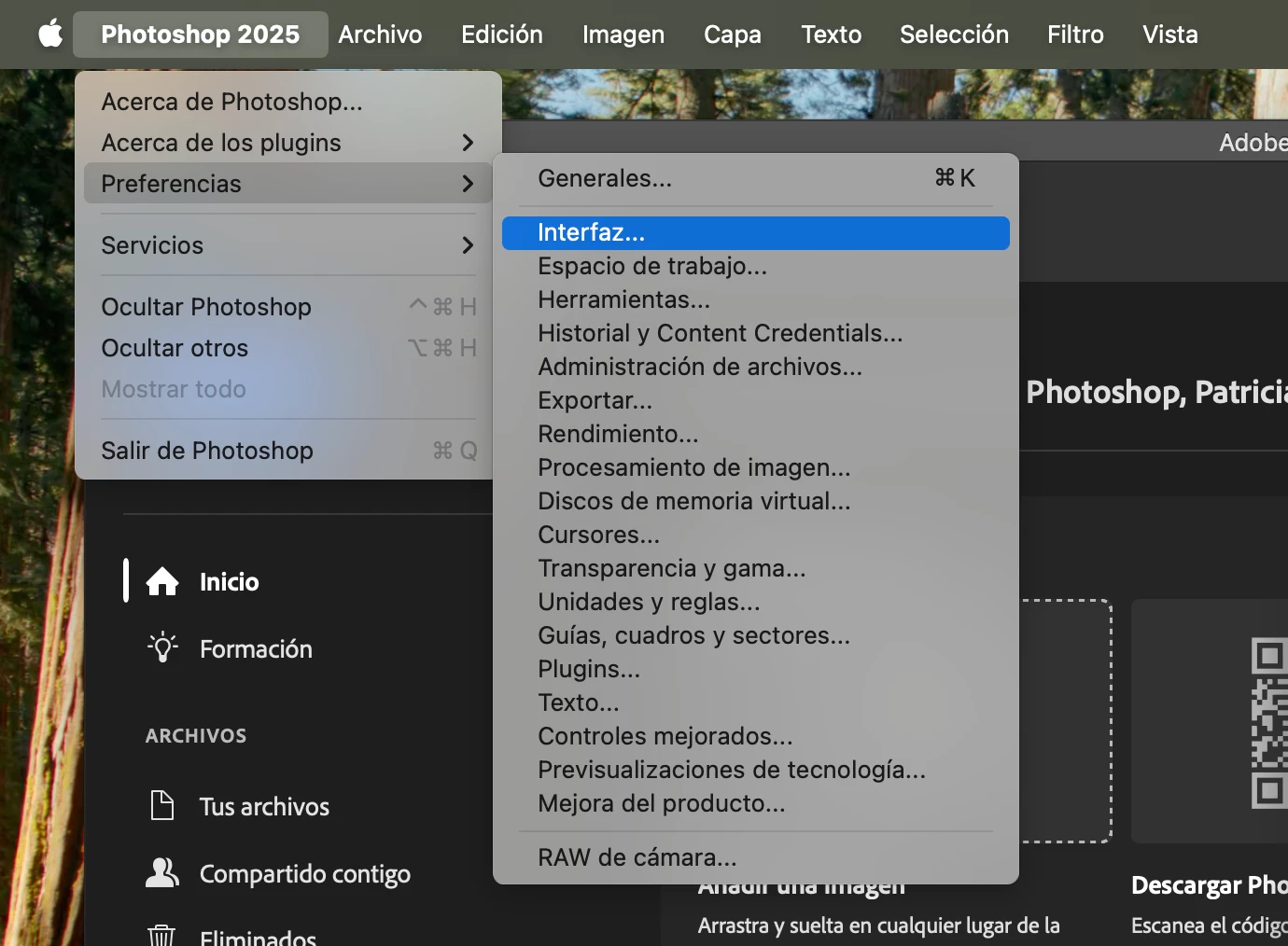 Cómo puedo cambiar el idioma de photoshop de español a inglés en una mac? en interfaz solo y unicamente me sale la opcion de español. Y no puedo hacer nada