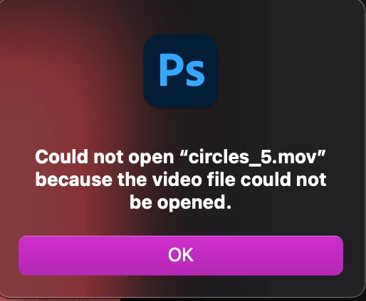 Problem is: Video filetypes (mov, mp4) cannot be opened directly from the external drive in Photoshop.