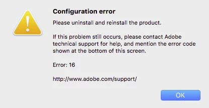 Updated the OS on a Mac Pro to OS 10.13.6 High Sierra. Then attempted to launch PS CS6 and got a Configutation Error. Please uninstall and reinstall this product. Error: 16 (see attached screen shot)