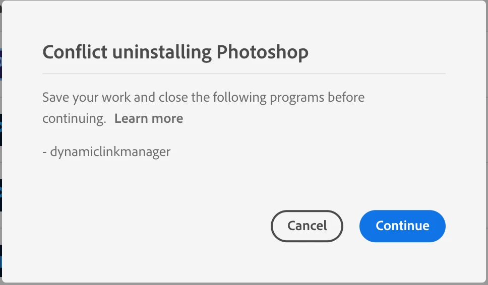 I am trying to uninstall Photoshop 13.0 (not used for years as now on Photography plan) but get the error message