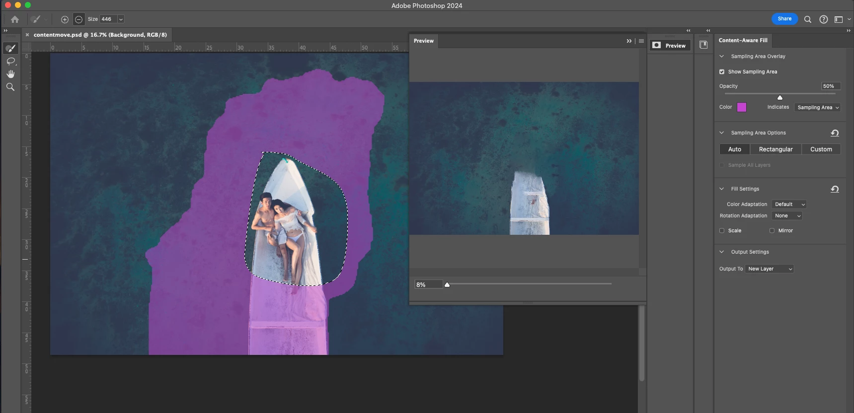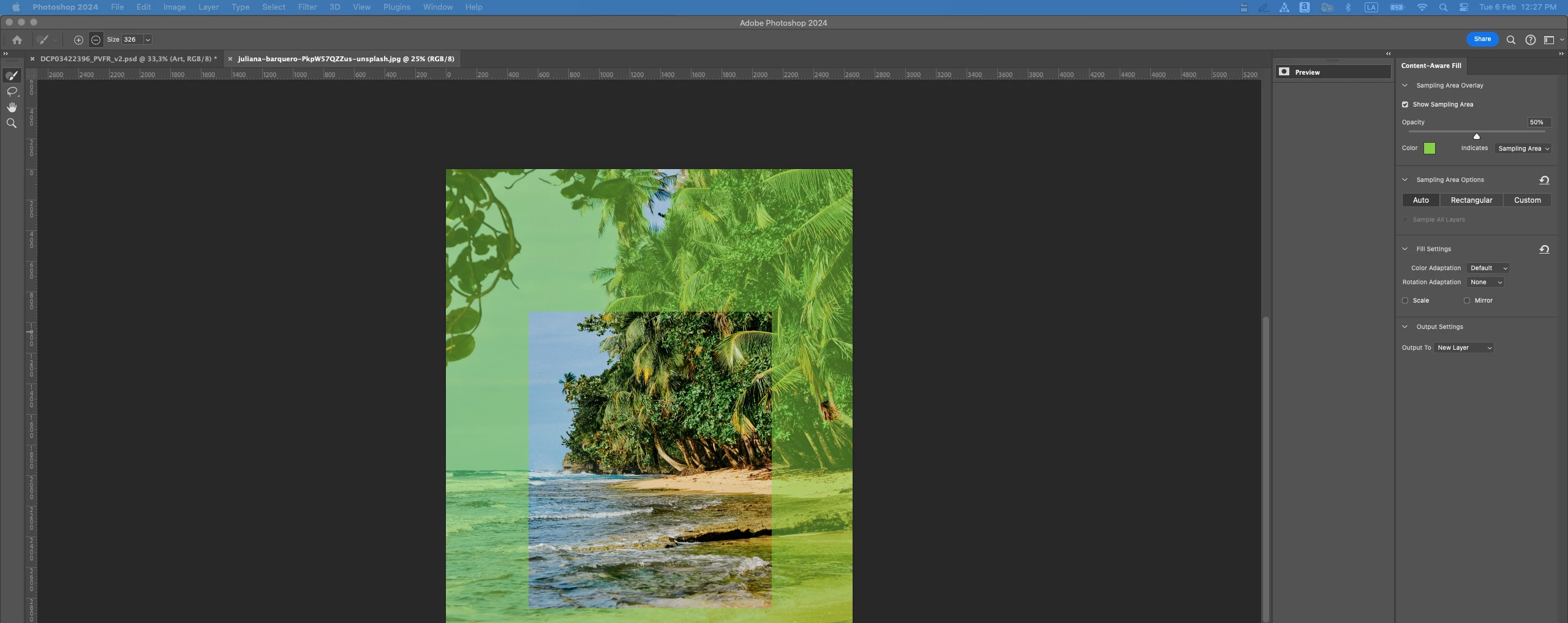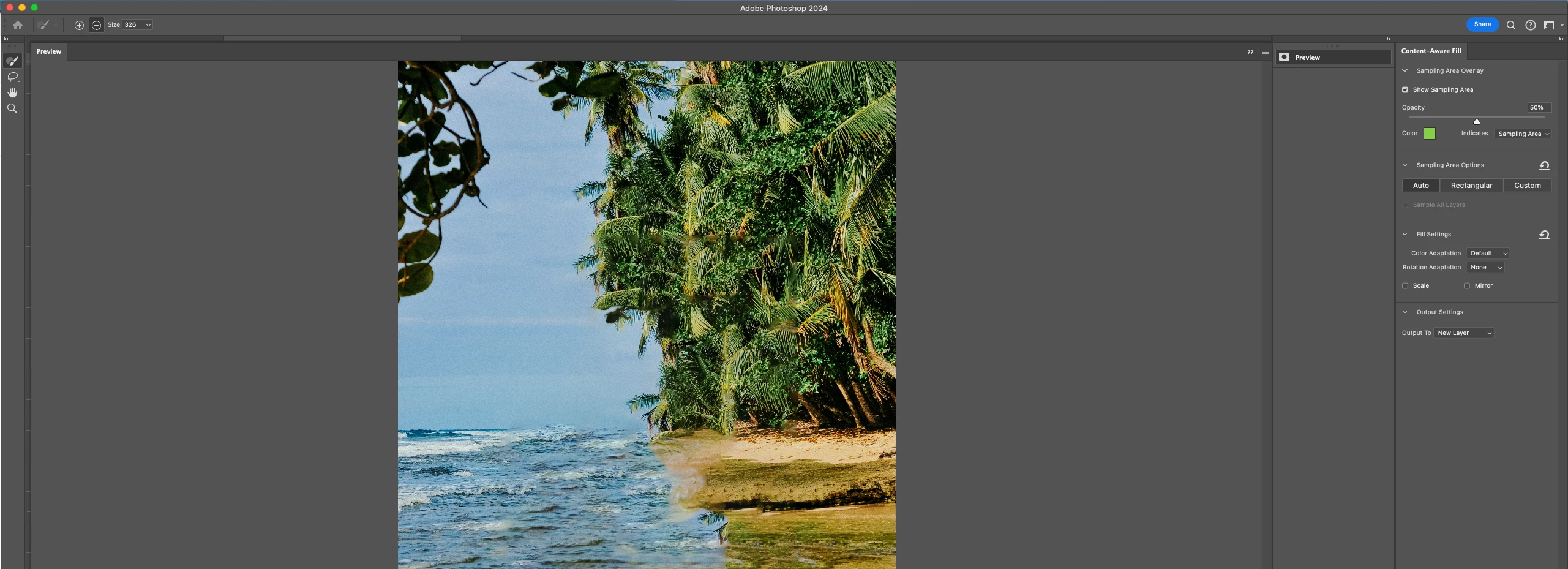 Content aware fill brush and lasso not working. Sampling area not visible.