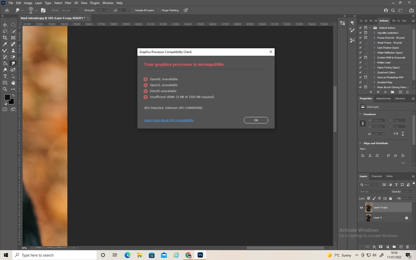 Content Aware Tracing Tool - "OpenGL enabled...." error message?
