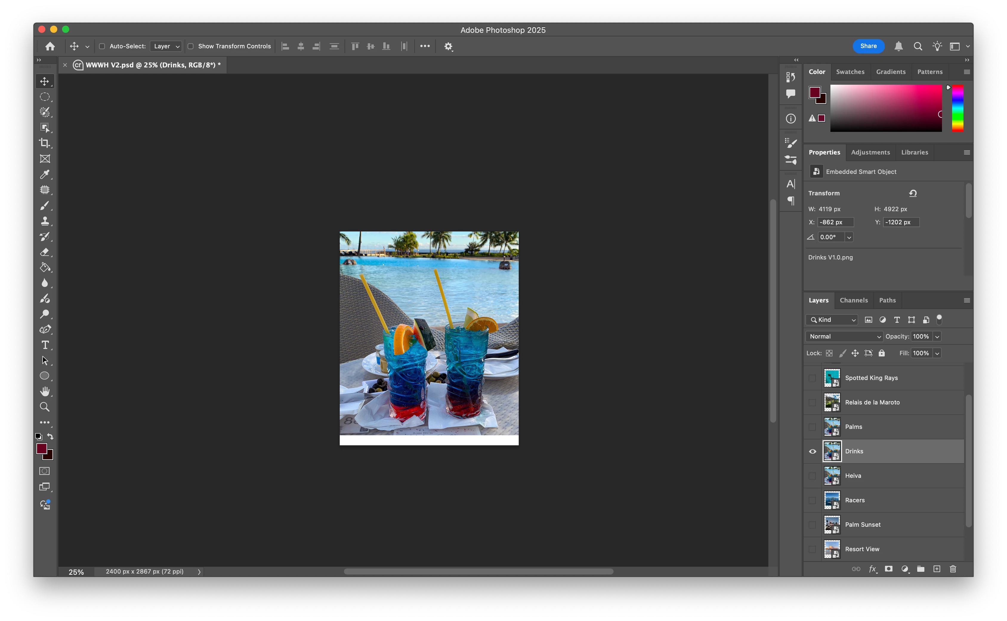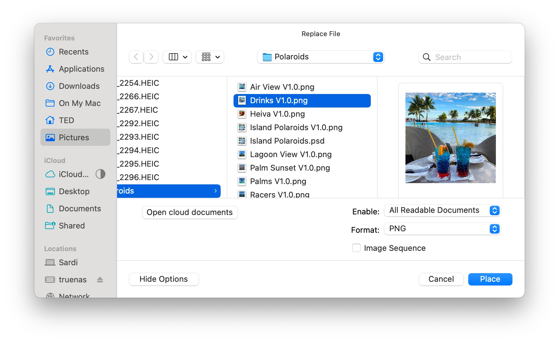 After pressing Place, this is what I received. Note that the Palms and Hevia layers now have the same image as the Drinks layer.