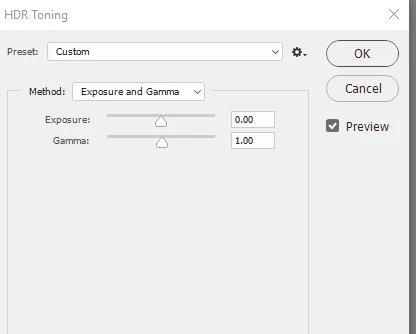 That aside, when you use Image Mode and change from 32bit to 16 bit you should get an HDR toning dialogue.
