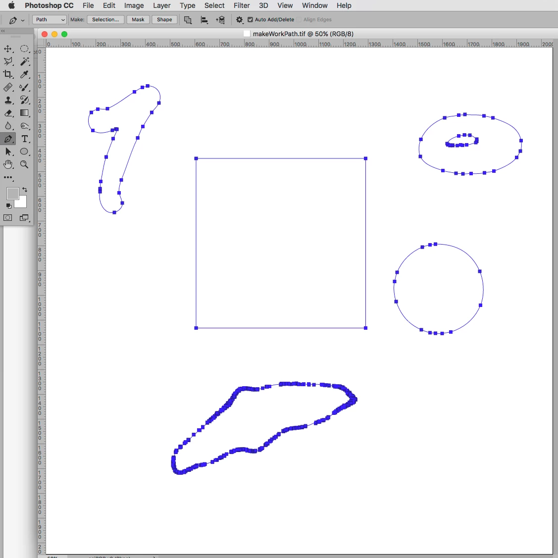 If you look closely here, the first is the path I made manually with the pen tool. The second is after I've converted my path to a layer mask, then converted it back into a path. Look closely and you'll see unnecessary anchor points and the path going off in odd directions. And bekow that is an example of setting the tolerance to 10, which makes things even worse.