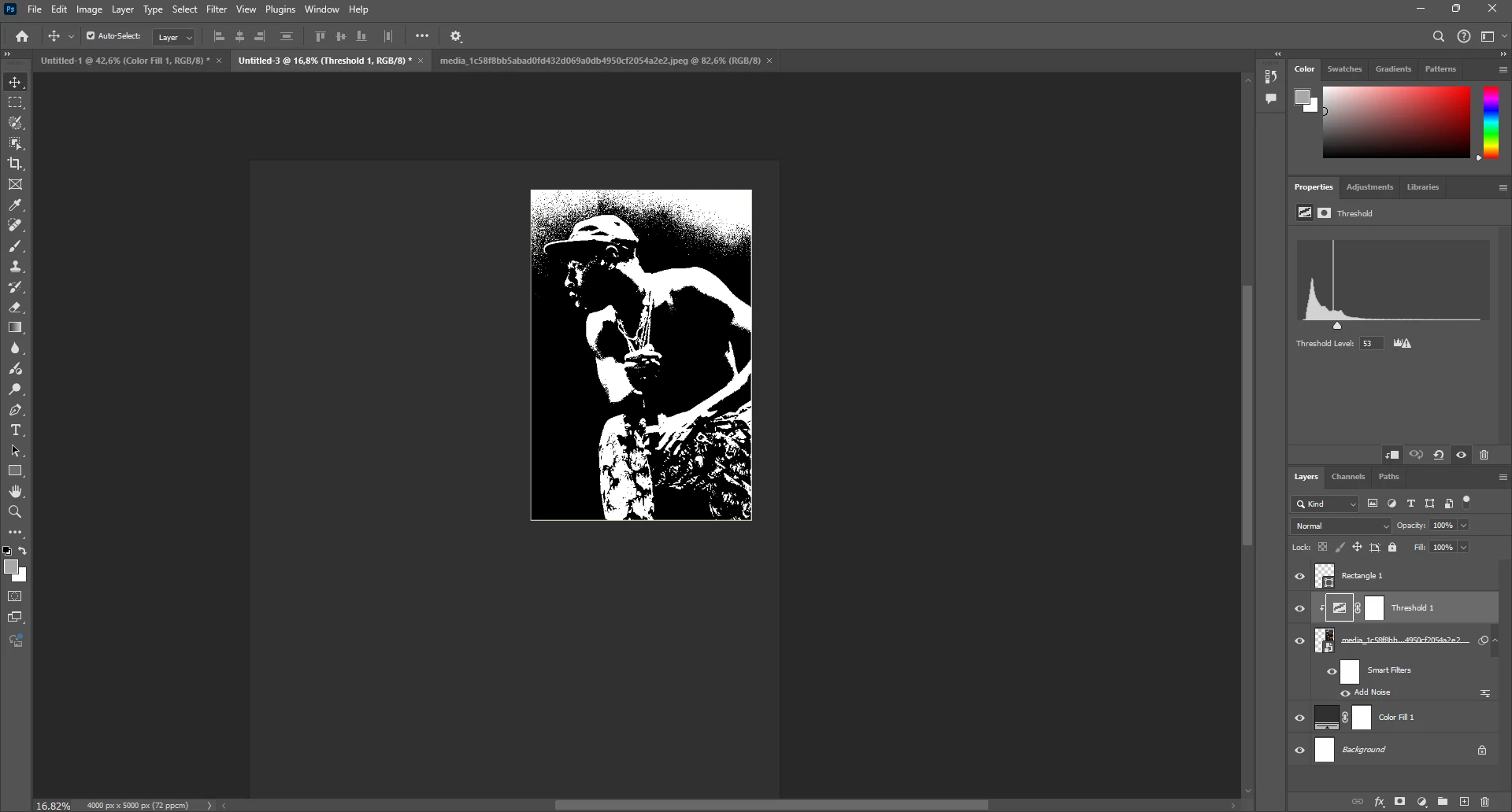 This is apparently an extremely noisy image, to the point where you basically have no gray pixels, only black or white.