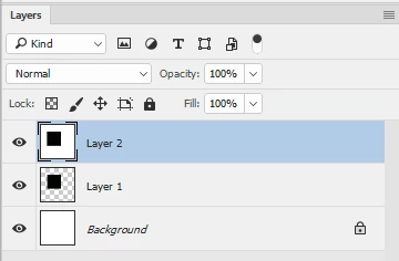 Start with two simple layers - background white - Layer 1 a black pixel square, the rest transparent.