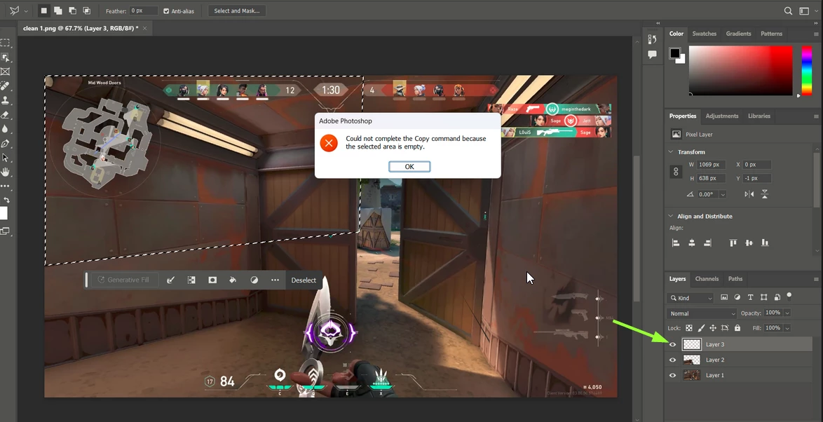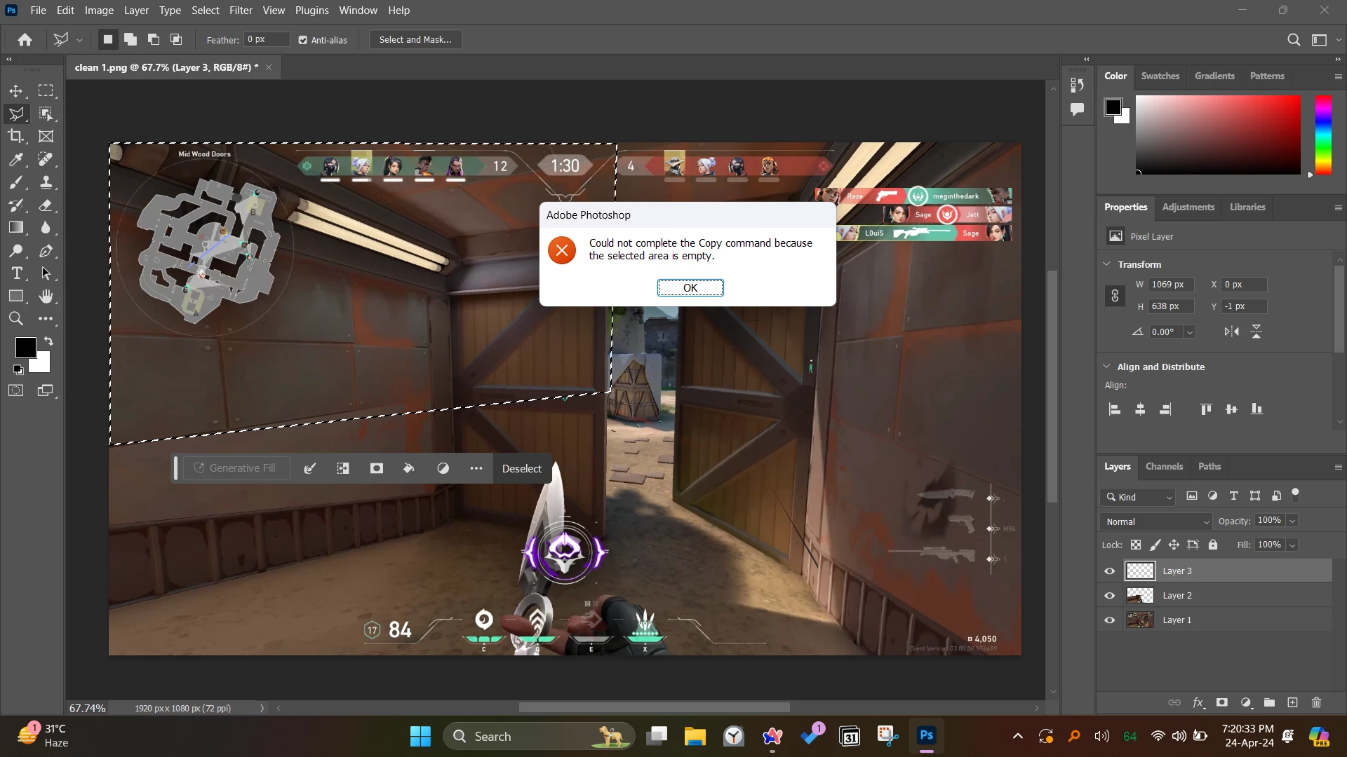 DDhairya DoshiParticipantForum|Forum|1 year agoApril 24, 2024AnsweredCopy pasting in Photoshop says the area is empty when it isn't.Forum|Forum|1 year agoApril 24, 20241 reply1080 viewsWindows