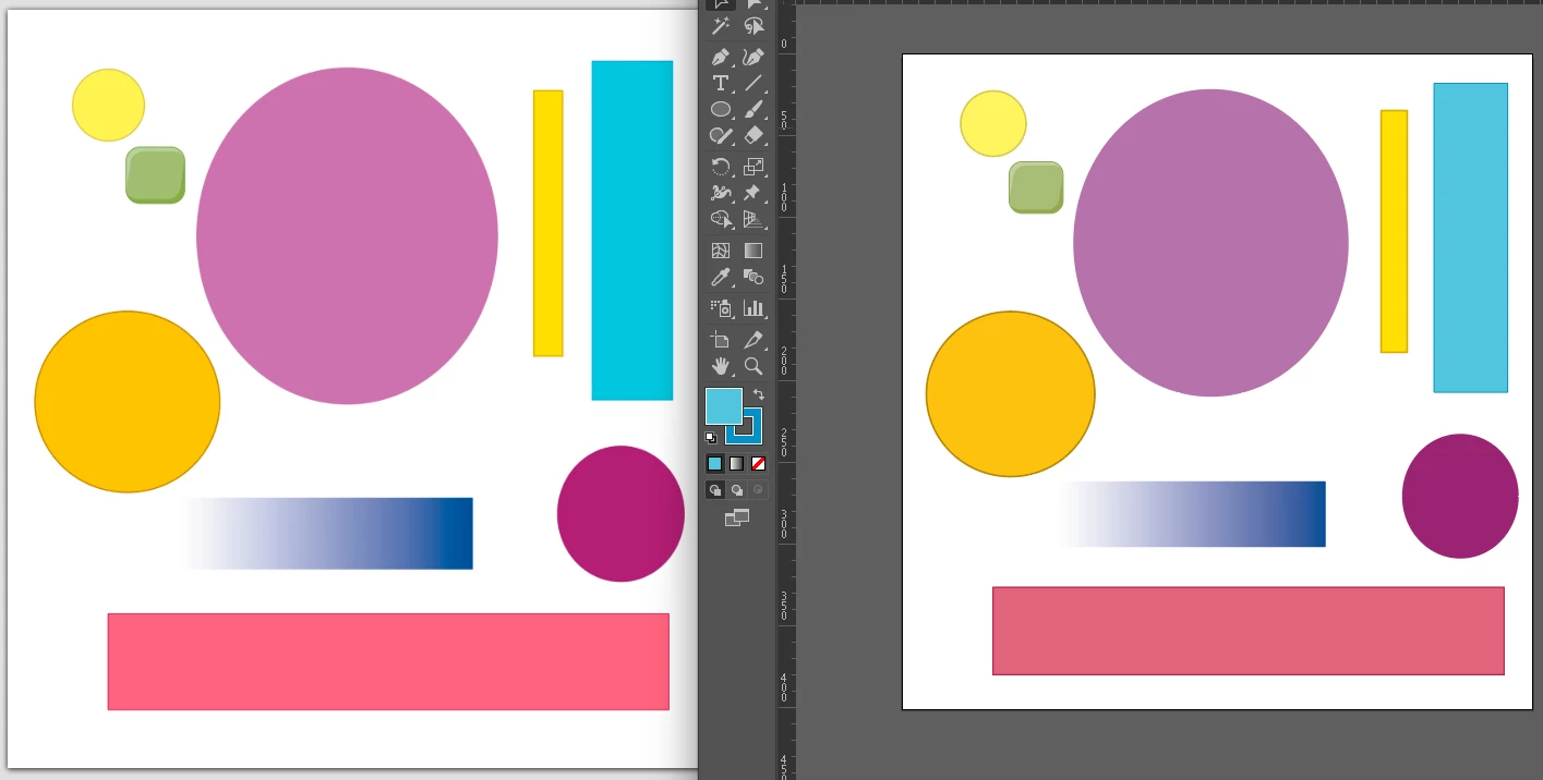 I am trying to troubleshoot an issue with CMYK designed .eps files that were given to me to alter in Illustrator and display via a web link. I am finding that everything looks great right until I try to post the exported .pngs or .jpegs to web display. This is not a problem with other images that have been posted to the same web displays, and it happens in more than one platform. I have been trying all kinds of variations on color modes, and settings within Illustrator. I believe that the problem is coming from the .eps in the first place. But now I'm wondering if I can't do something to the exported pngs and jpgs in Photoshop that would drop whatever color information is throwing a wrench into their web appearance. Does anyone have any experience with something like this? Here is an example of the kind of color differentiation I'm seeing. But rather than the usual problem of an RBG image getting dulled when converted to CMYK, I'm struggling with a CMYK image that becomes oversaturated in the web's RGB space. And so far I haven't been able to find an RGB conversion setting that fixes the problem. Suggestions?