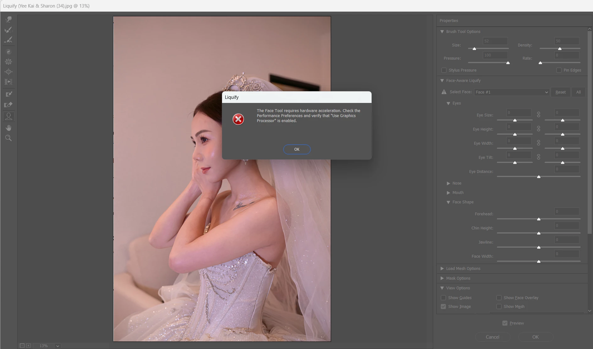 Could Not Complete Liquify Command because of a "disk error" in Photoshop v26.0, Window