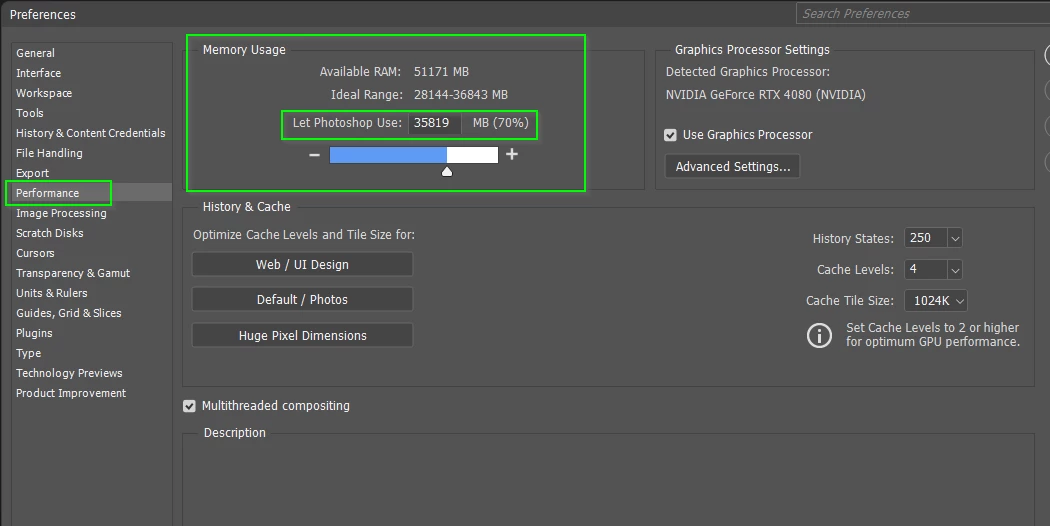 How m,uch memory have you allocated to Photoshop?