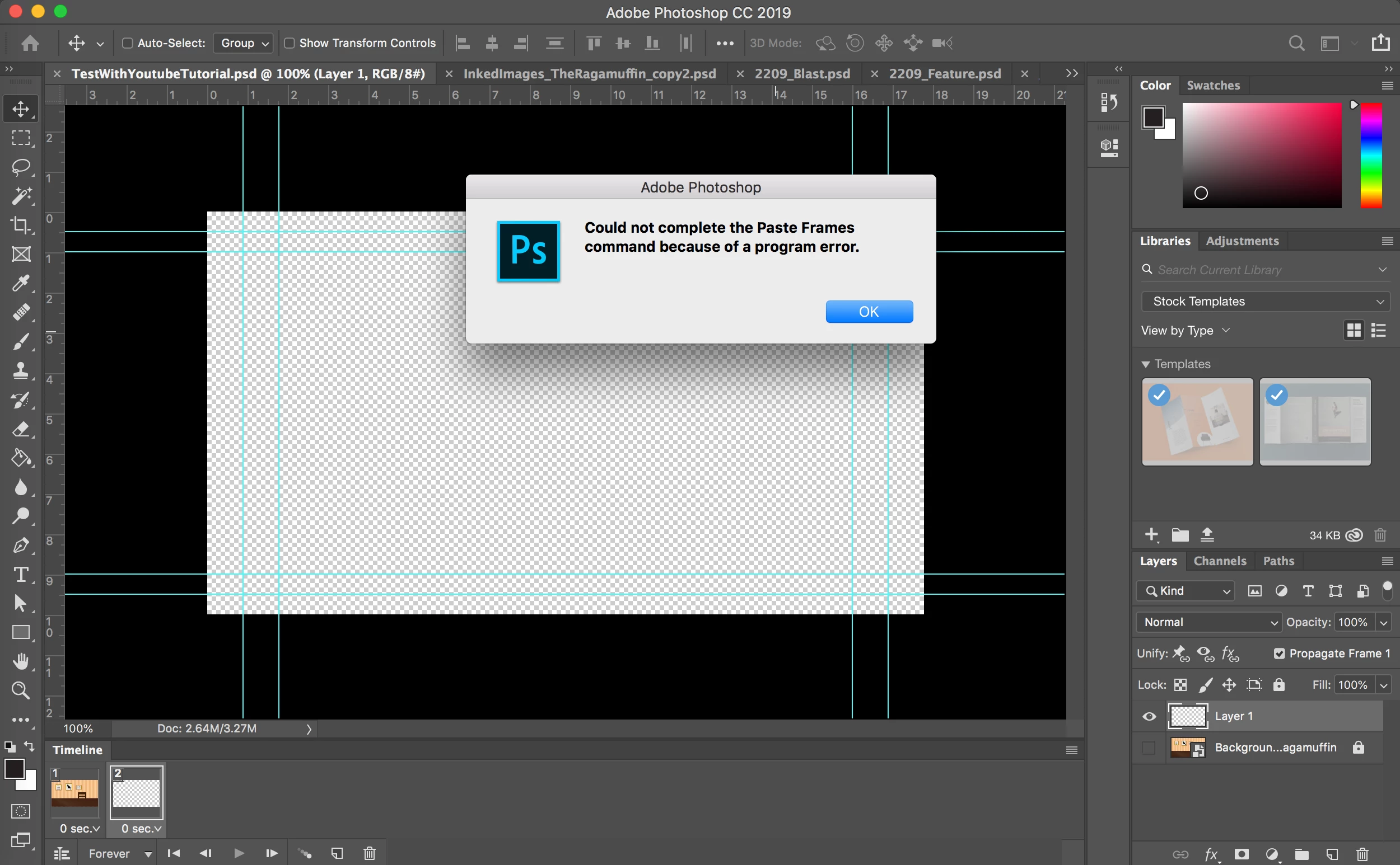 "Could not complete the Paste Frames command because of a program error."
