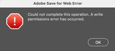 All of a sudden 'Save for web' won't save files to any disk on my system... "Save for web: Could not complete this operation. A write permissions error has occurred".
