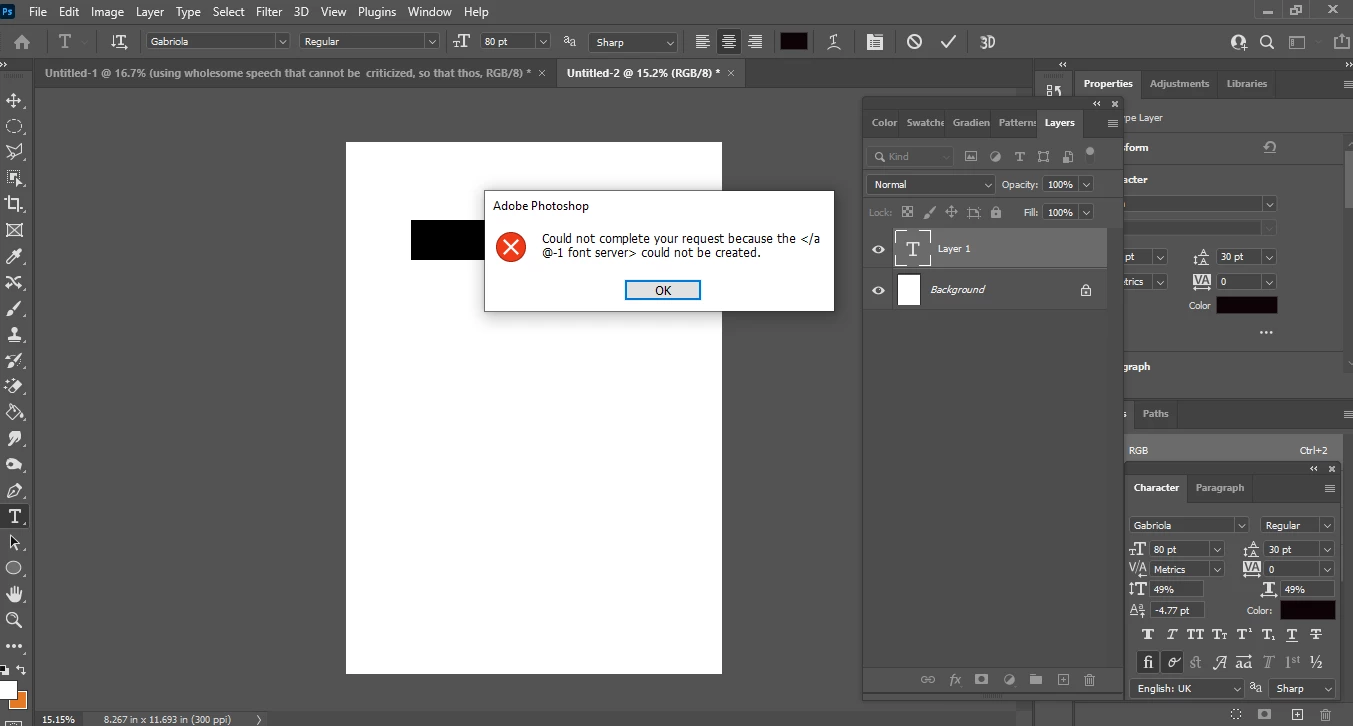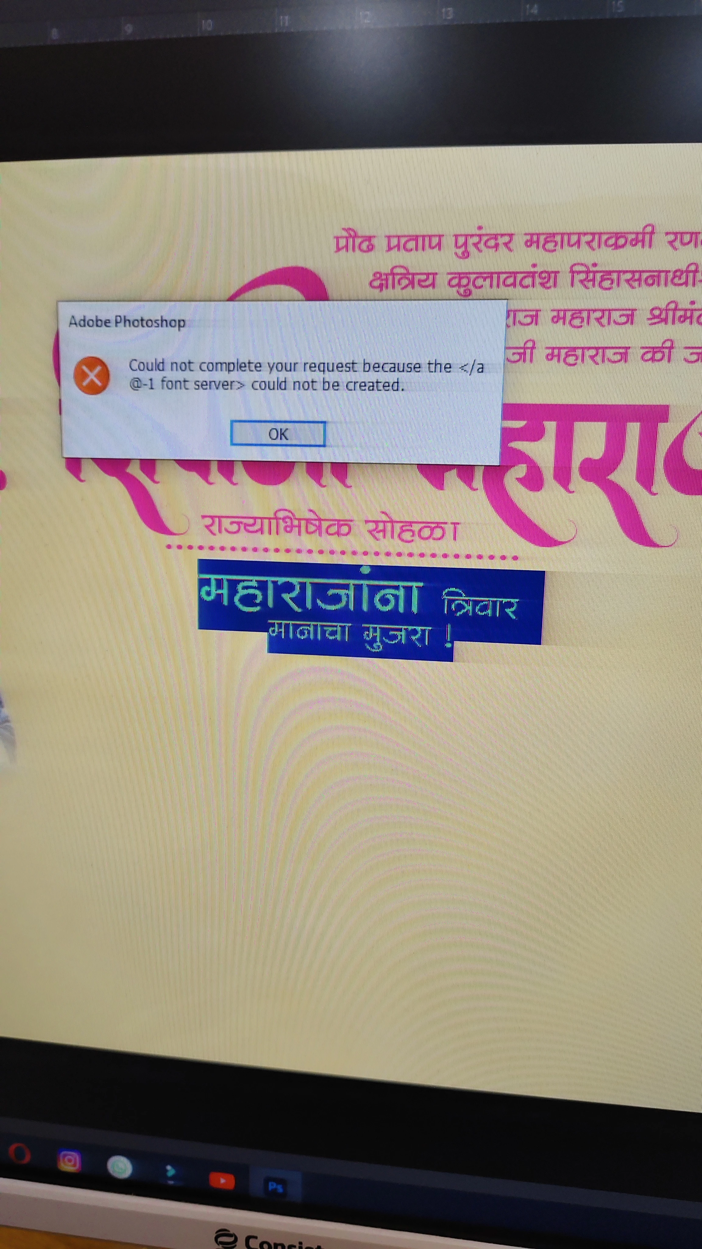 "Could not complete your request because the </a@-1 Font Server > could not be created"
