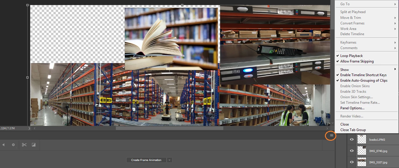 Could not find Make Frame From Layers from Animation/Timeline palette menu