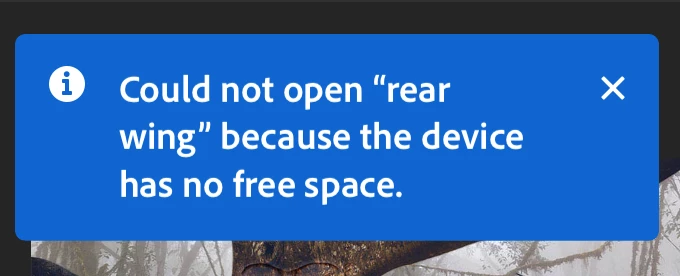 Could not open file because device has no free space