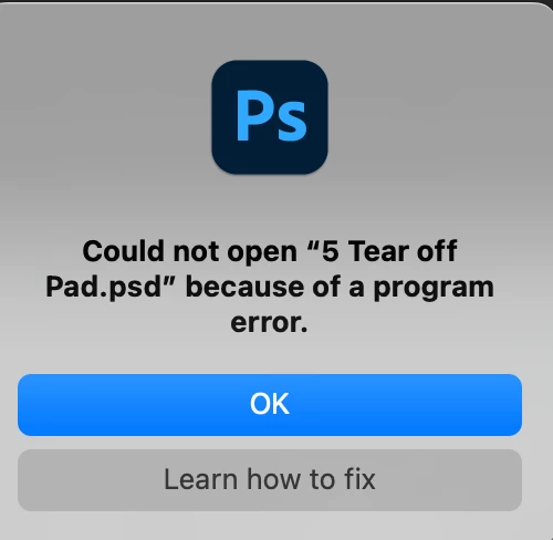 Anyone experience in photoshop 25.1.0 Could not open "FILE NAME.psd" because of a program error. ???