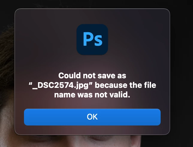 Could not save as “_DSC2574.jpg” because the file name was not valid.
