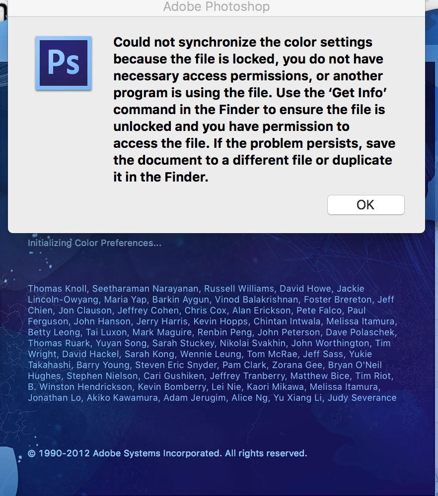 Could not synchronize the color settings because the file is locked - Adobe Photoshop CS6