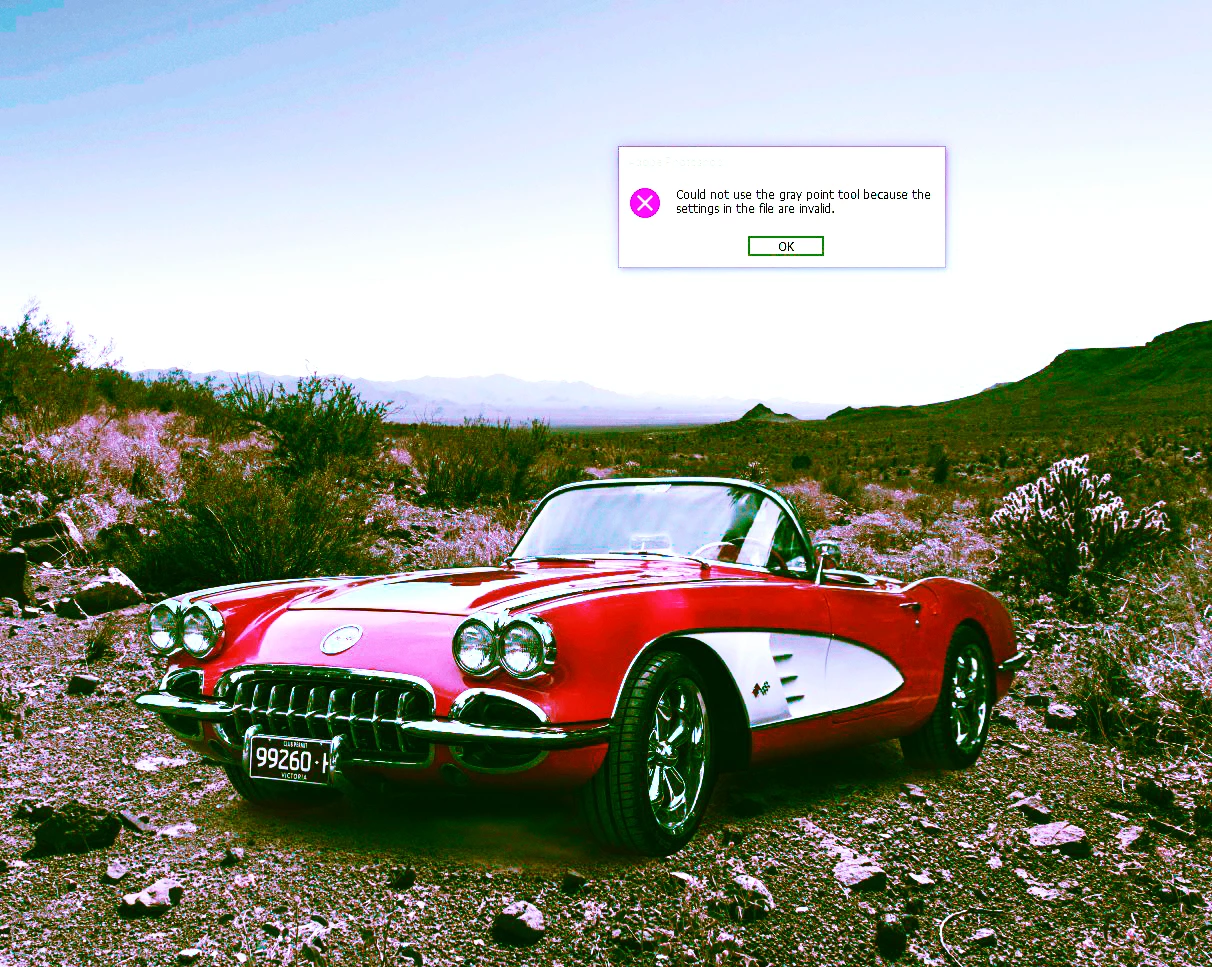 When trying to set a black, gray and white point on a photo, I consistently get the error message: "Could not use the gray point tool because the settings in the file are invalid" What does that mean and how can I correct it?
