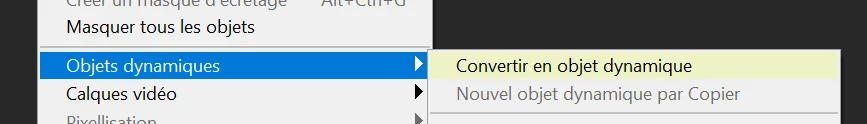 est-il possible de colorer une fonction par exemple "convertir en objet dynamique " dans le menu de la fenêtre des calques.