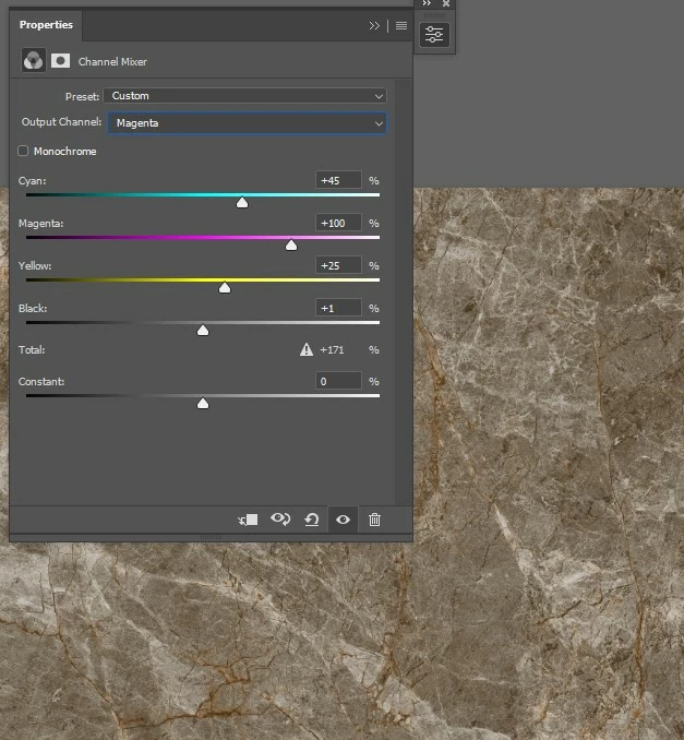 magenta channel, color value cyan=45, magenta=100, yellow=2, black=1