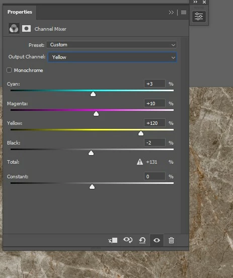 yellow channel, color value cyan=3, magenta=10, yellow=85, black=-2