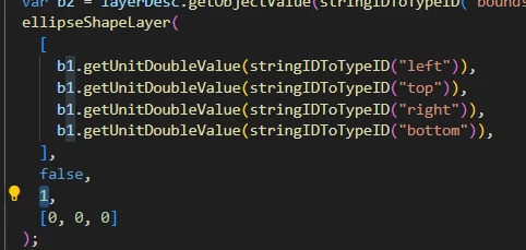 //ellipseShapeLayer ([b1.getUnitDoubleValue(stringIDToTypeID("left")), b1.getUnitDoubleValue(stringIDToTypeID("top")), b1.getUnitDoubleValue(stringIDToTypeID("right")), b1.getUnitDoubleValue(stringIDToTypeID("bottom"))], false, 3, [0,0,0]);