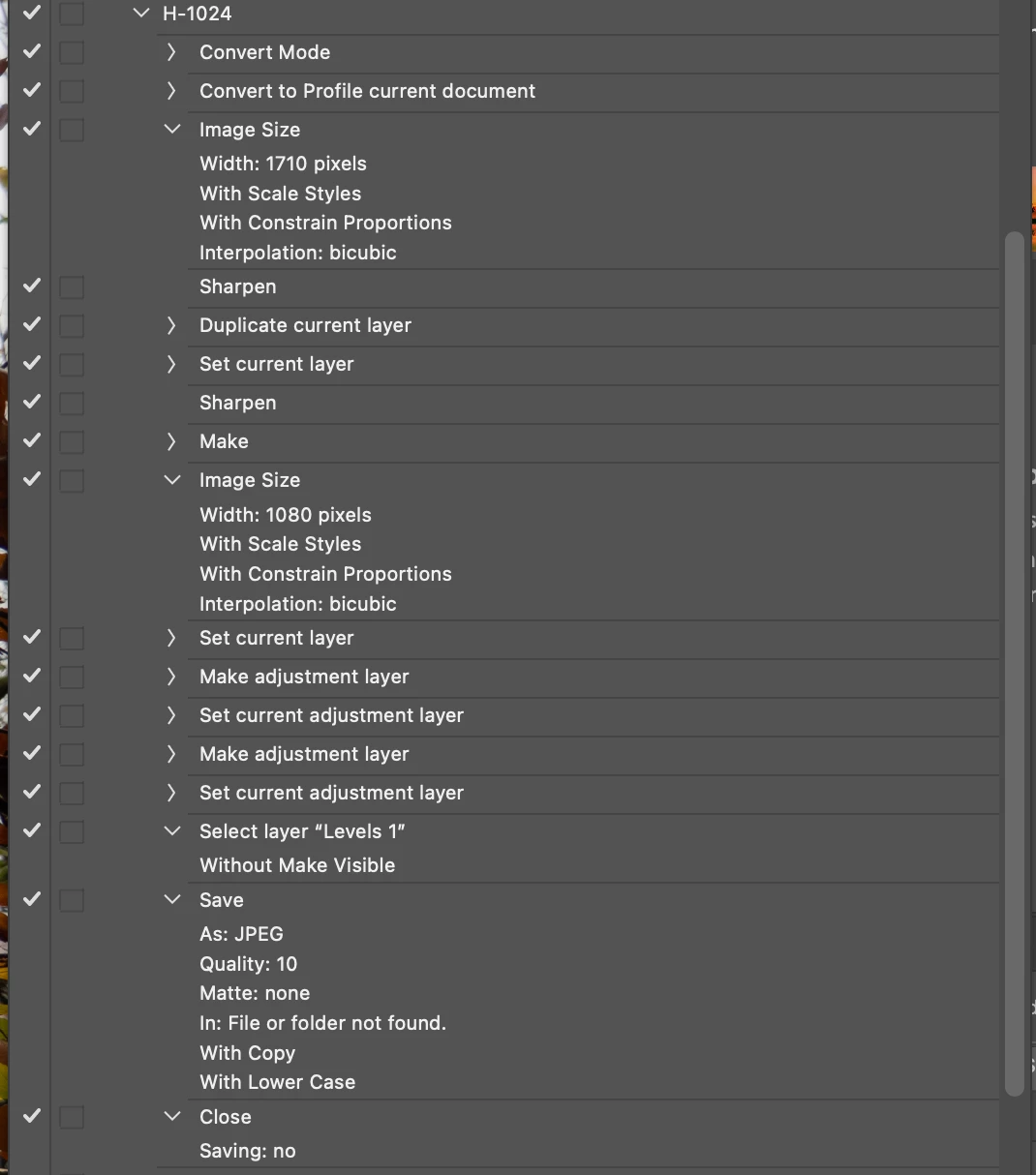 Create an Action to Save an Image to Jpeg from PS that has been sent to PS from LR Classic 24.4.1