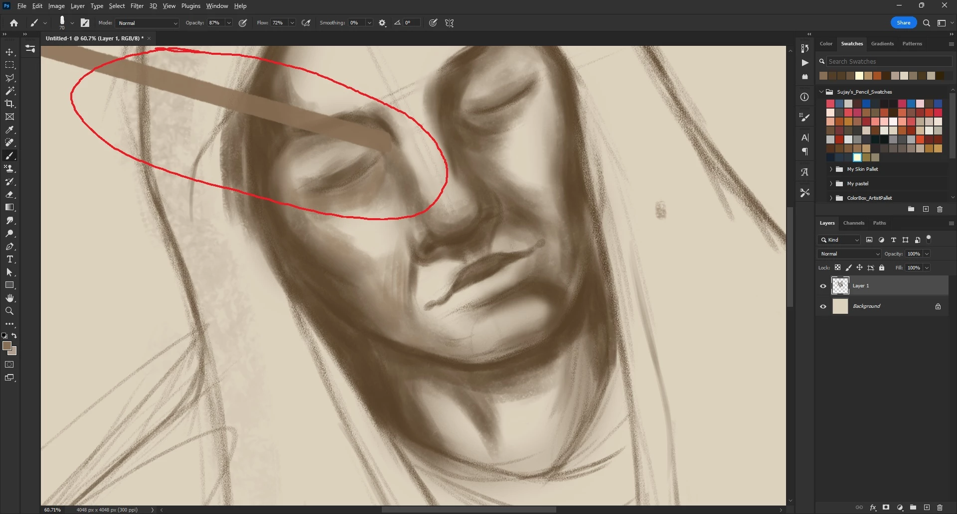Create Diagonal line while drawing in photoshop