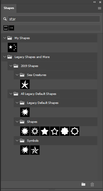 In Photoshop 22.2.0, I was learning the tutorial about including vector graphics. When i followed the step to use custom shape tool to create a star, i can not find that many shapes as shown in tutorial. I was wondering if it's because of the new version. You can see the screenshot to see more detail. Thank you for your help!