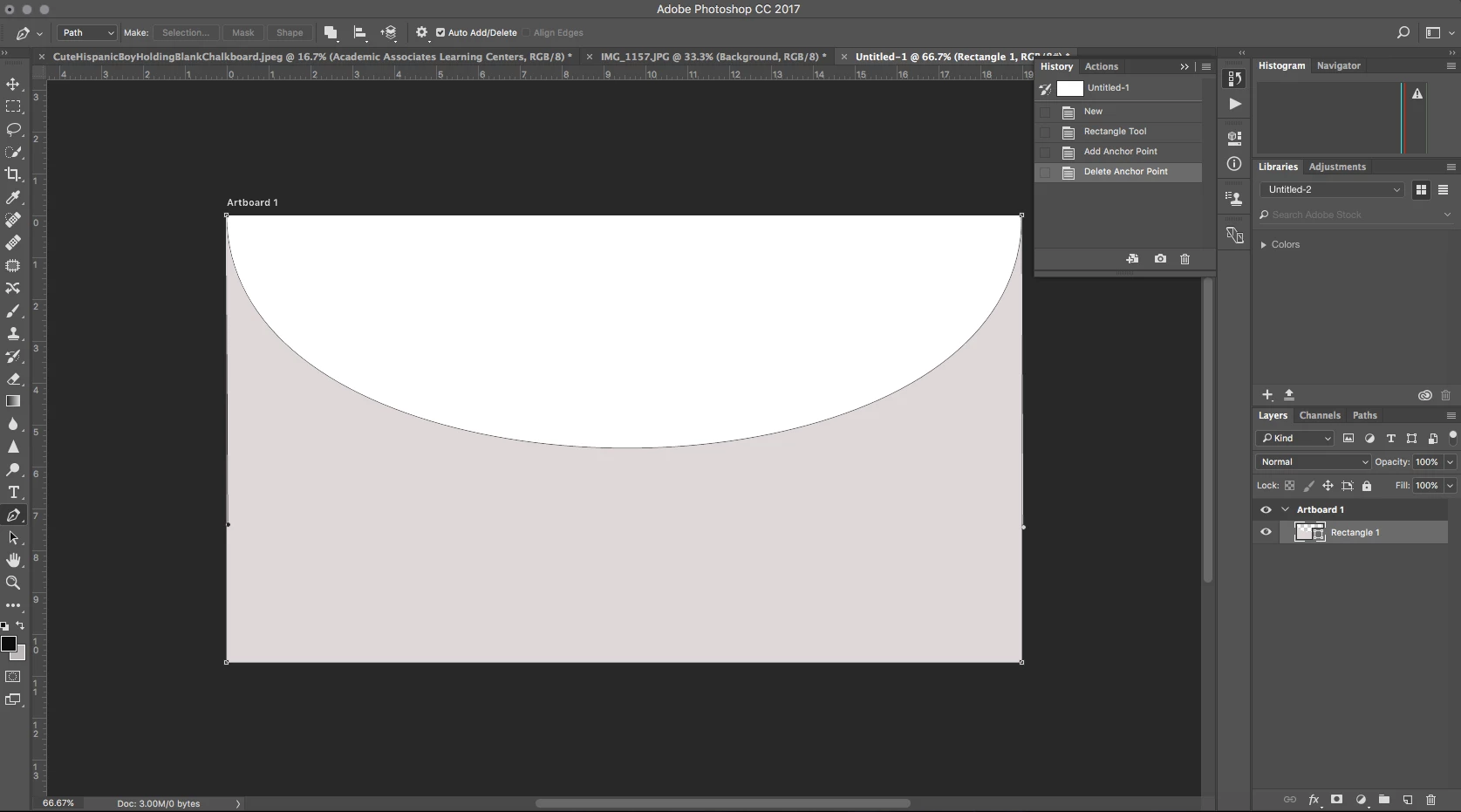 Use the Rectangular Shape tool to make a box with a fill but no stroke. With the Pen tool, click on the middle of the top edge of the Shape. You will see the Pen cursor change to have a little plus sign by it, and a new control point will be added. Now Alt+Click on this point with the Pen tool to convert it to a Corner Point. Finally, hold the Control key to change the Pen to the Direct Selection tool, and drag this point downward.