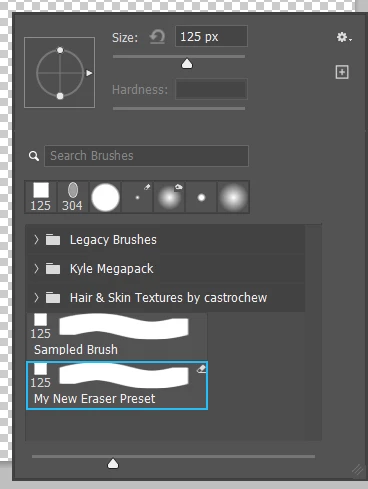 How do I create an eraser brush so that it has the eraser icon in the top right corner of the brush box? I know how to use a brush as an eraser, but I want to create a collection of eraser brushes and be able to see the eraser icon and use it as a permanent eraser rather than having to change the brush settings to clear all the time.