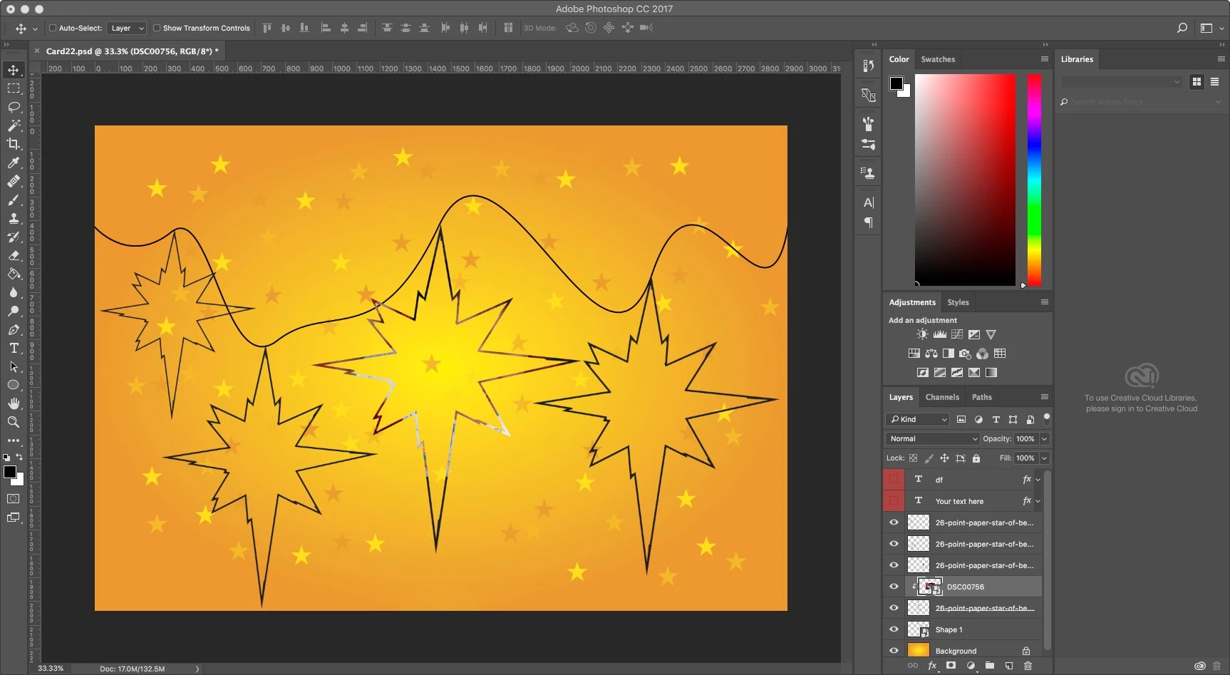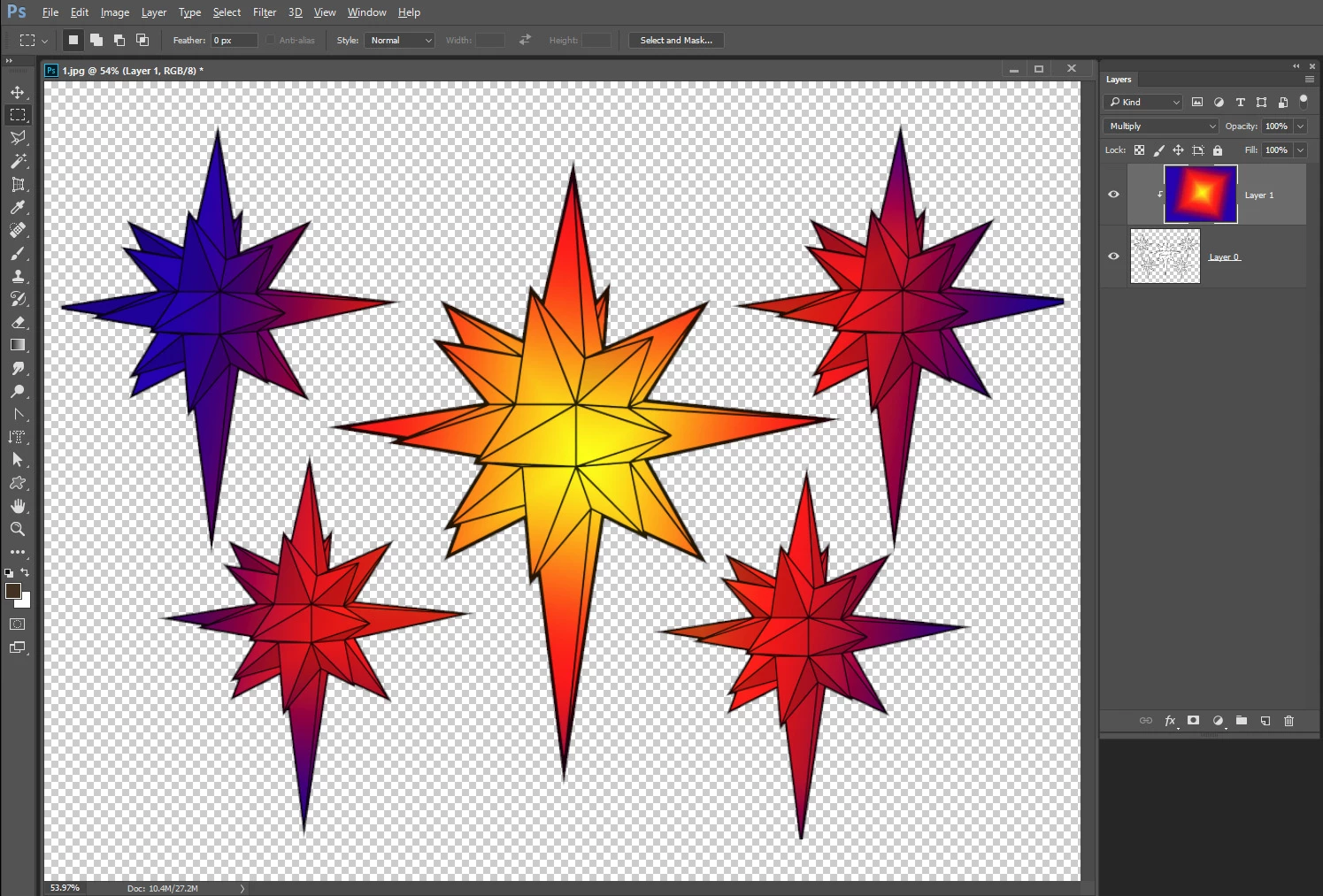 I am looking fro the best way to make an images fit in these stars, i am having trouble with the create clipping mask tool, ideally i would love to have the image centered in the star and then blend it well with the rest of the star.