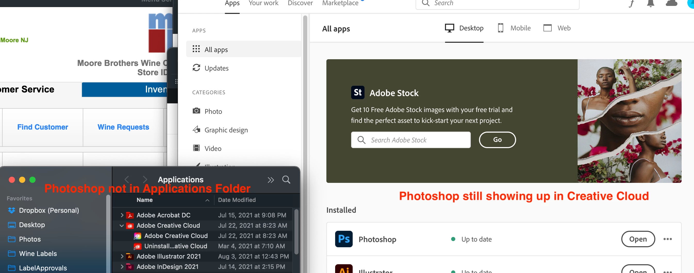Creative Cloud thinks Photoshop is installed, and won't allow a re-download.