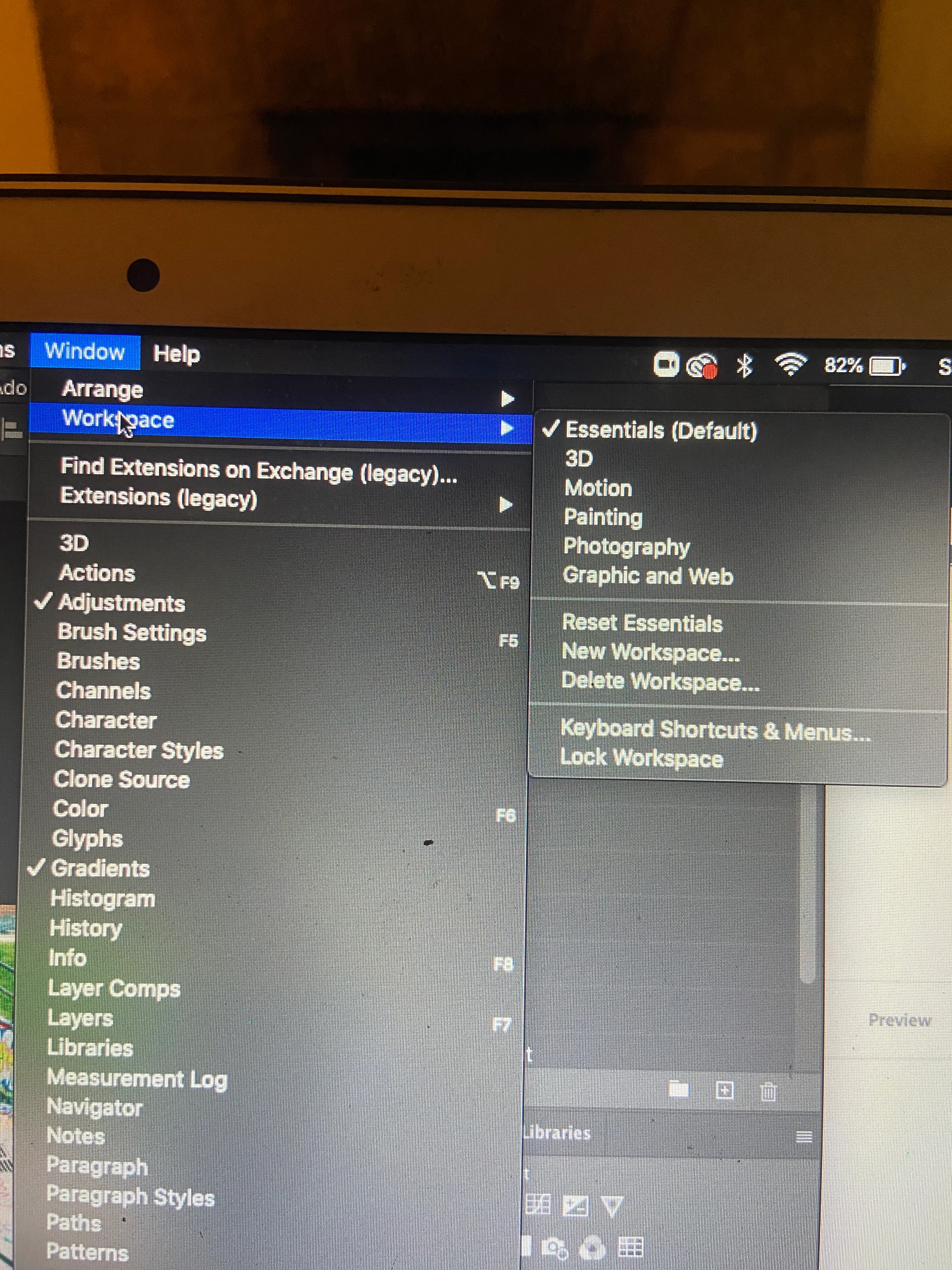 The Window Workspace is Default.
