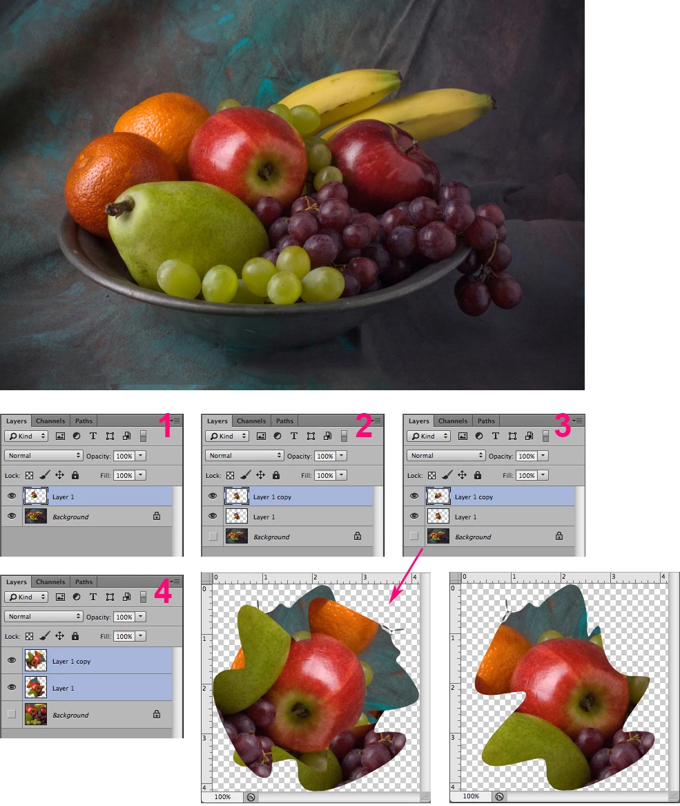 Sometimes, despite the obvious efficiency of scripts and plug-ins, there is satisfaction of solving a problem using only Photoshop regular tools . Here is one such solution, doing the work on a duplicate of the original file.