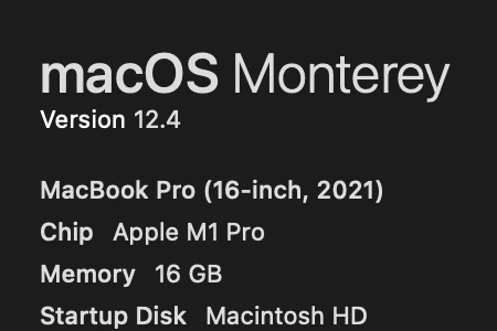 MacBook Pro, M1 Pro, macOS Monterey v12.4