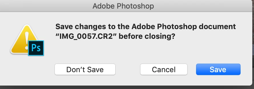 Screen shot shows what it asks when I want to close picture after saving