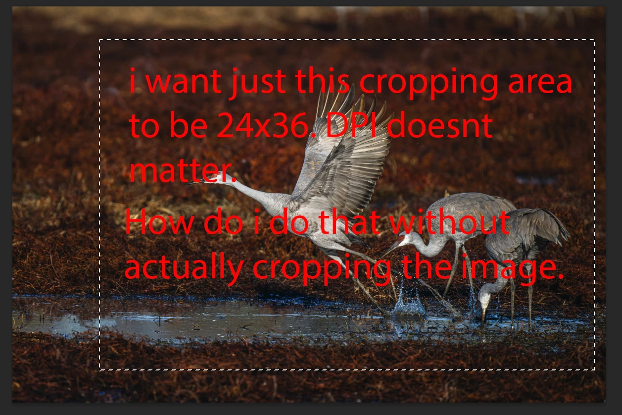 I want the size of just the cropped area to be 24x36, within the larger area, without actually cropping.