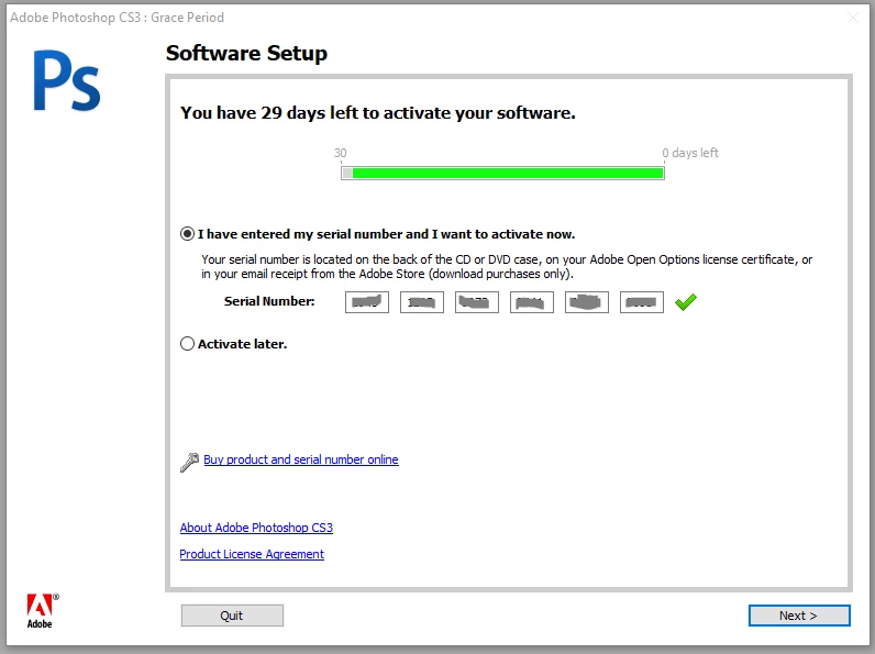 Hi, I have been in contact with the Adobe chat help online and was refered to the forum hoping some could help me. I have a photoshop cs3 that was trying to install in my computer. At the end of the installation it is asking for an activation, through 4 options: