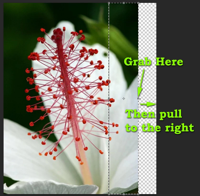 >4. Edit - Content Aware Scale and drag the right edge handle to fill the canvas.