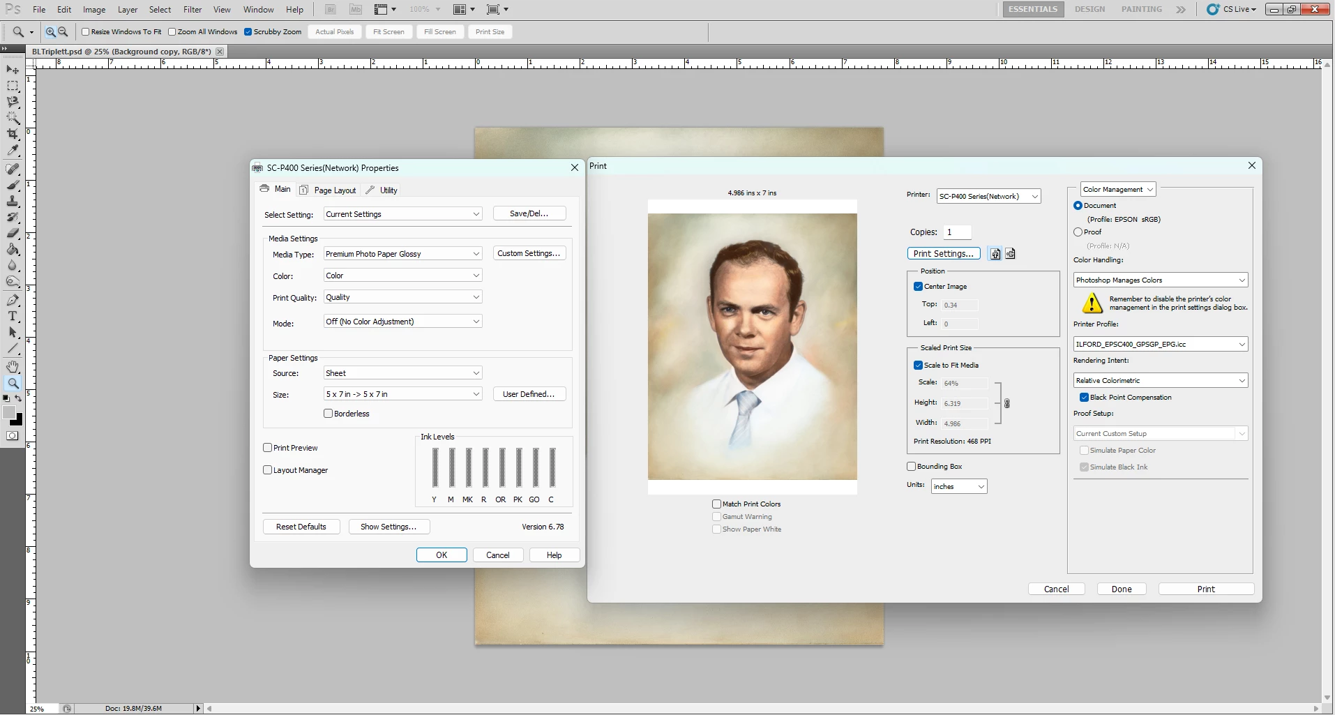 3. When printing you should use the printer profile that matches the Printer, Ink and Media used when the profile is made. So that means, in Photoshop's print dialogue, set 'Photoshop manages colours' and choose the appropriate printer profile for your printer and paper. In the Epson printer driver (accessed through Photoshop's 'printer settings' ) ensure the correct media is chosen and ensure Colour Management is set to 'Off' in that Epson driver - that is important as you do not want to have the colours adjusted twice).