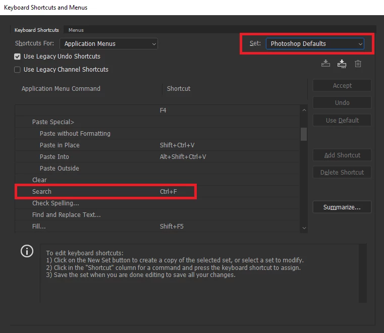 Searching for tools, tutorials and Adobe Stock content cannot be triggered anymore by Ctrl-F (Edit -> Search) or the search icon in the top right corner of UI. Nothing happens. Whereas the search icon on the Home screen is still working.