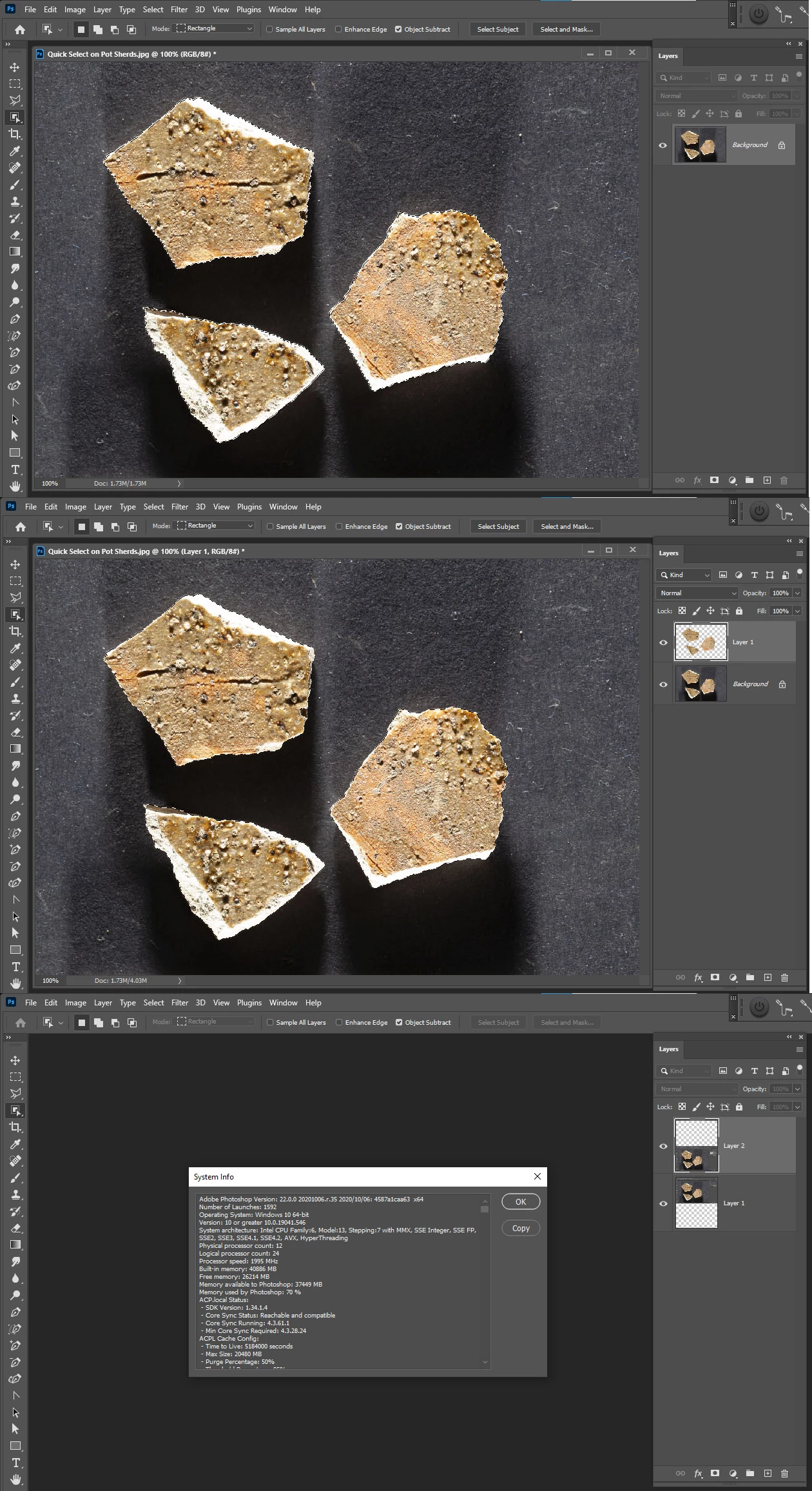 Help! In the latest Photoshop 22.0.0 I find Ctrl+J is copying to a new layer a rectangular box bounding the pixels selected as well as the selected pixels. I used this feature extensively in previous versions and I'm at a loss as to how to make it work as before.